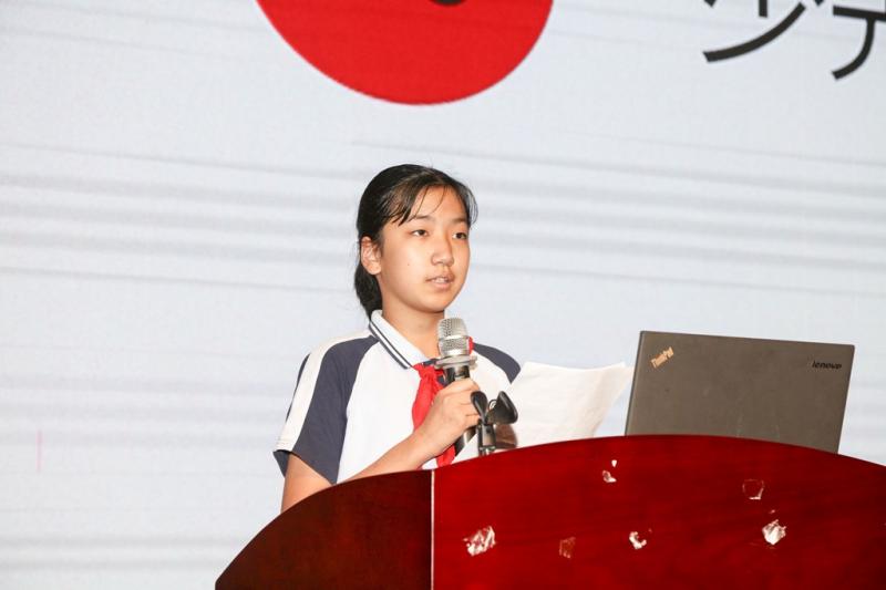 初一年级少先队员代表王艺为同学发言,并带领全体少先队员们重温了入队誓词,一句句庄严的誓词在耳边响起,时刻准备着为共产主义事业贡献力量,拥护党的领导。